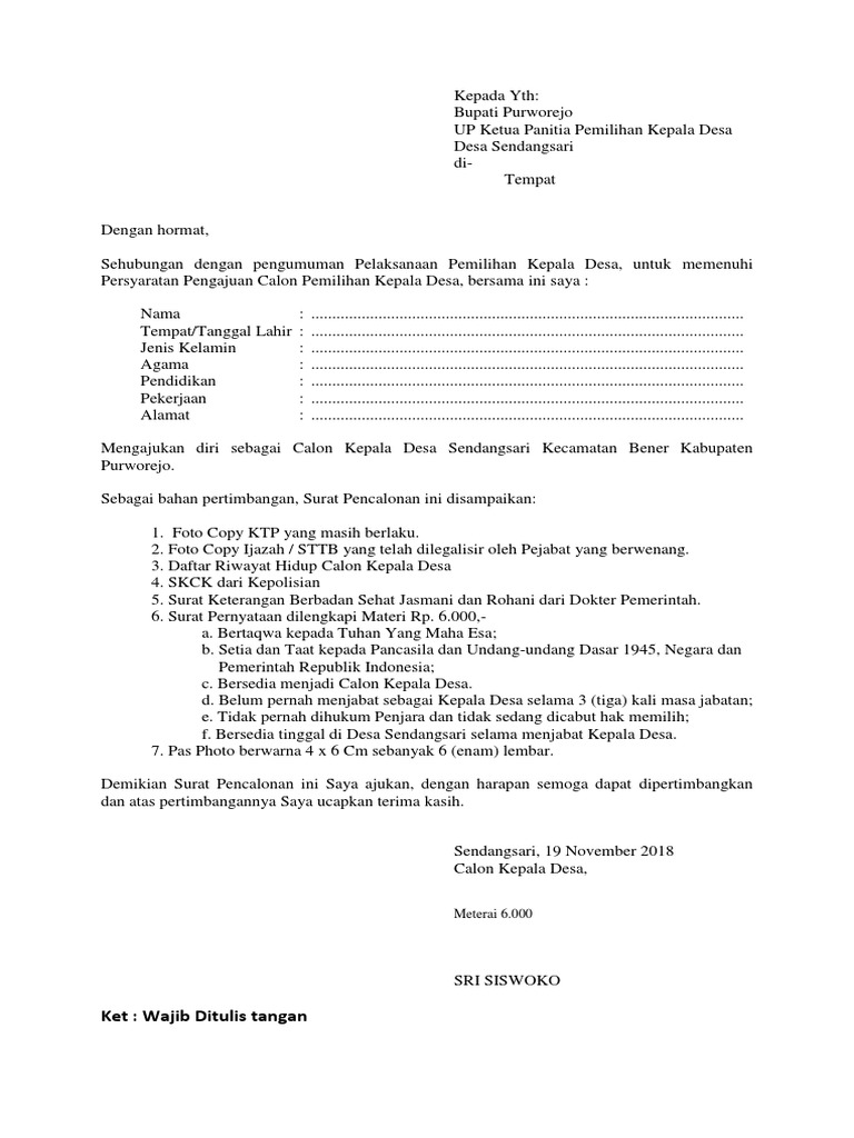 Contoh Surat Lamaran Kades